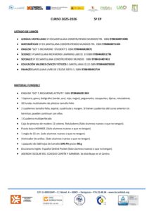 Lista libros 5º EP oficial (con francés) 25-26