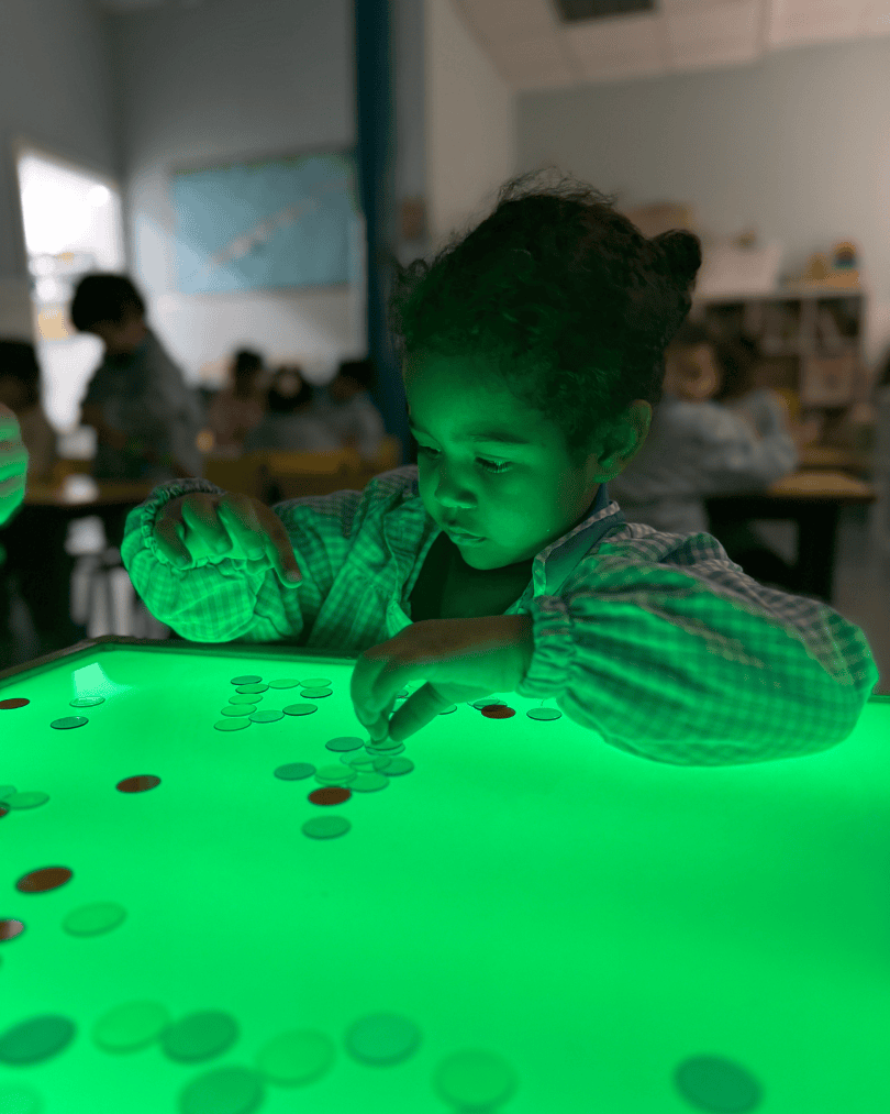 En el día a día de nuestro centro, buscamos constantemente herramientas que despierten la curiosidad innata de los más pequeños. Hoy, queremos abrir una ventana a uno de los rincones más especiales de nuestras aulas de Infantil: la mesa de luz.